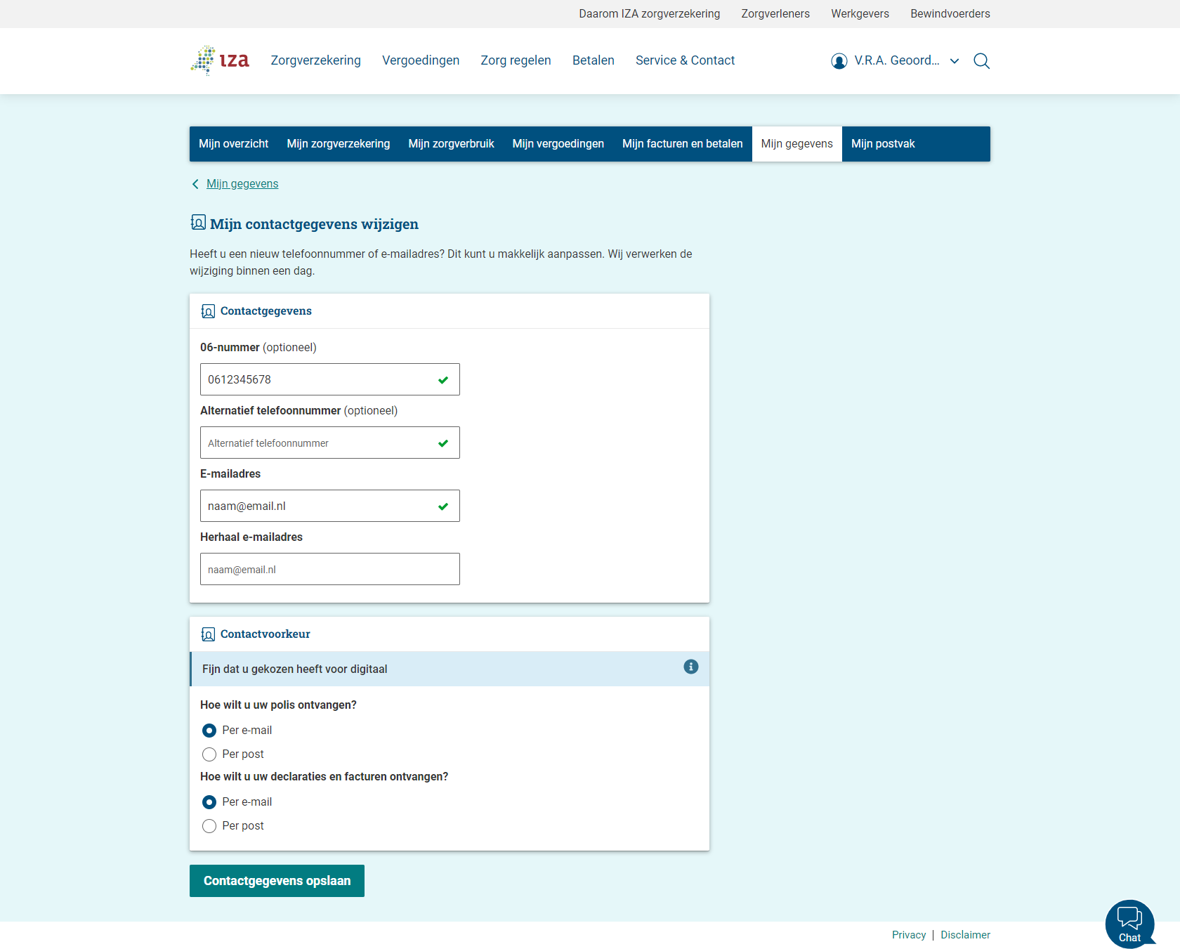 Het heet 'per e-mail' omdat u een e-mailbericht krijgt als er post in de Mijn IZA voor u klaarstaat. - Klik op Opslaan. En klaar!
