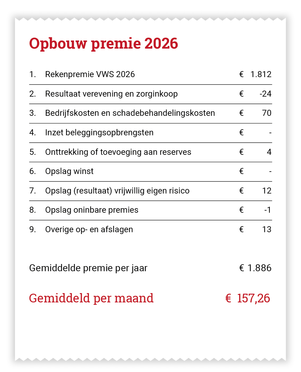 Het ministerie van Volksgezondheid, Welzijn en Sport maakt ieder jaar met Prinsjesdag de rekenpremie bekend. Het ministerie baseert deze premie op de kosten van de zorg die zij in het komende jaar verwacht en berekent wat dat per premiebetaler betekent. Voor 2026 verwachtte het ministerie een toename van de zorgkosten, onder andere door looninflatie, vergrijzing en medische ontwikkelingen. De rekenpremie bevat alléén de zorgkosten. De rekenpremie houdt geen rekening met het inkoopvoordeel dat zorgverzekeraars behalen door afspraken te maken met zorgverleners (zie ook 2) en ook niet met bedrijfskosten (zie 3) van zorgverzekeraars.