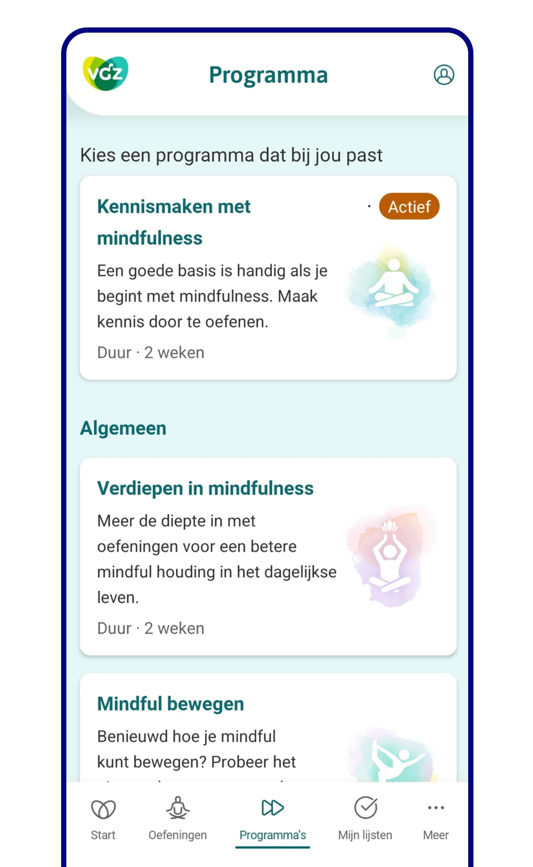 - 3 extra programma’s voor IZA-verzekerden: Mindful gezin, Mindful werk en Zen in de zorg.